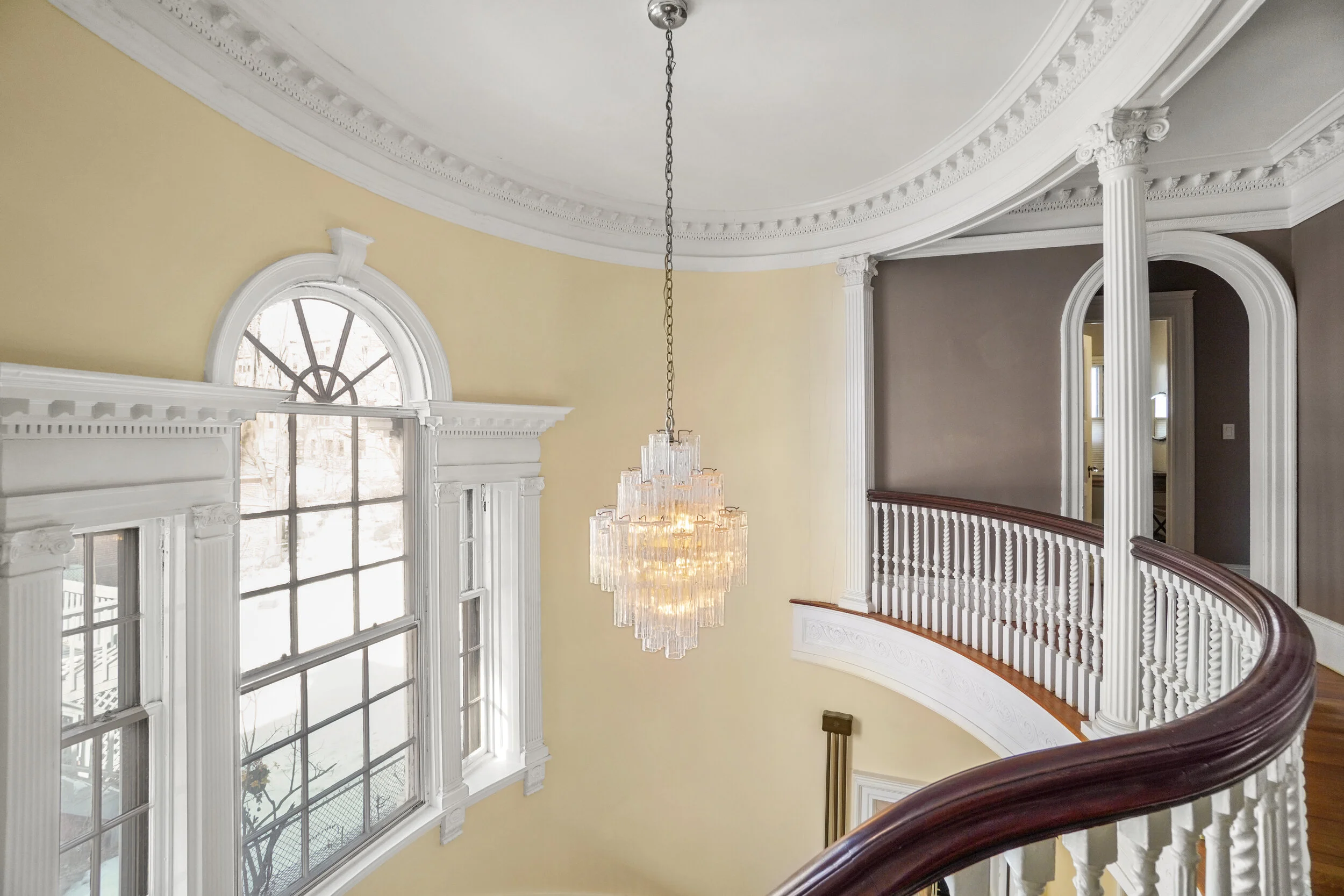 Available for only the third time in its history, 11 Wayne Street is rich with both history and incredible details and character. Designed by J. Williams Beal, a highly respected architect, for judge Albert F. Hayden at the turn of the 20th century, 11 Wayne consists of 5 bedrooms and 2.5 bathrooms, with nearly 5,000 square-feet of living space on a quarter-acre lot, just outside of downtown Boston. Step into the house and be immediately wowed by the stunning two-story foyer with a spiral staircase, chandelier, arched windows and a beautiful ceiling wrapped in detailed crown molding.