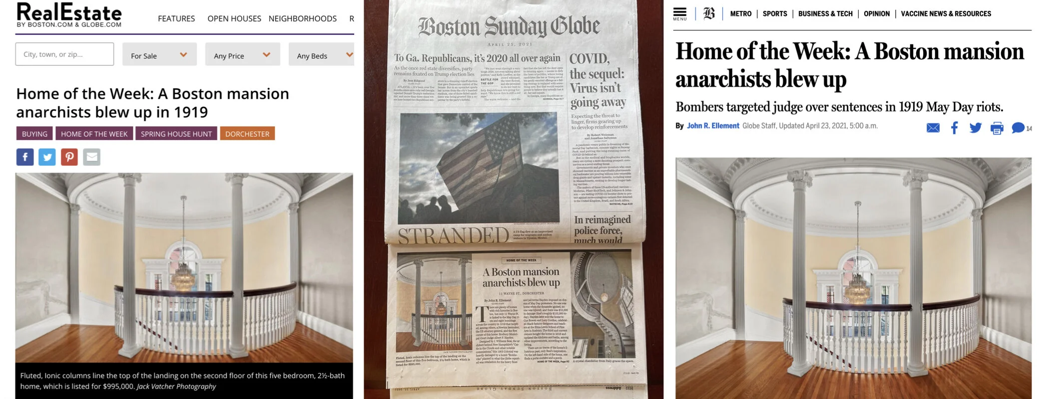 - Featured on boston.com and BostonGlobe.com as the “Home of the Week”